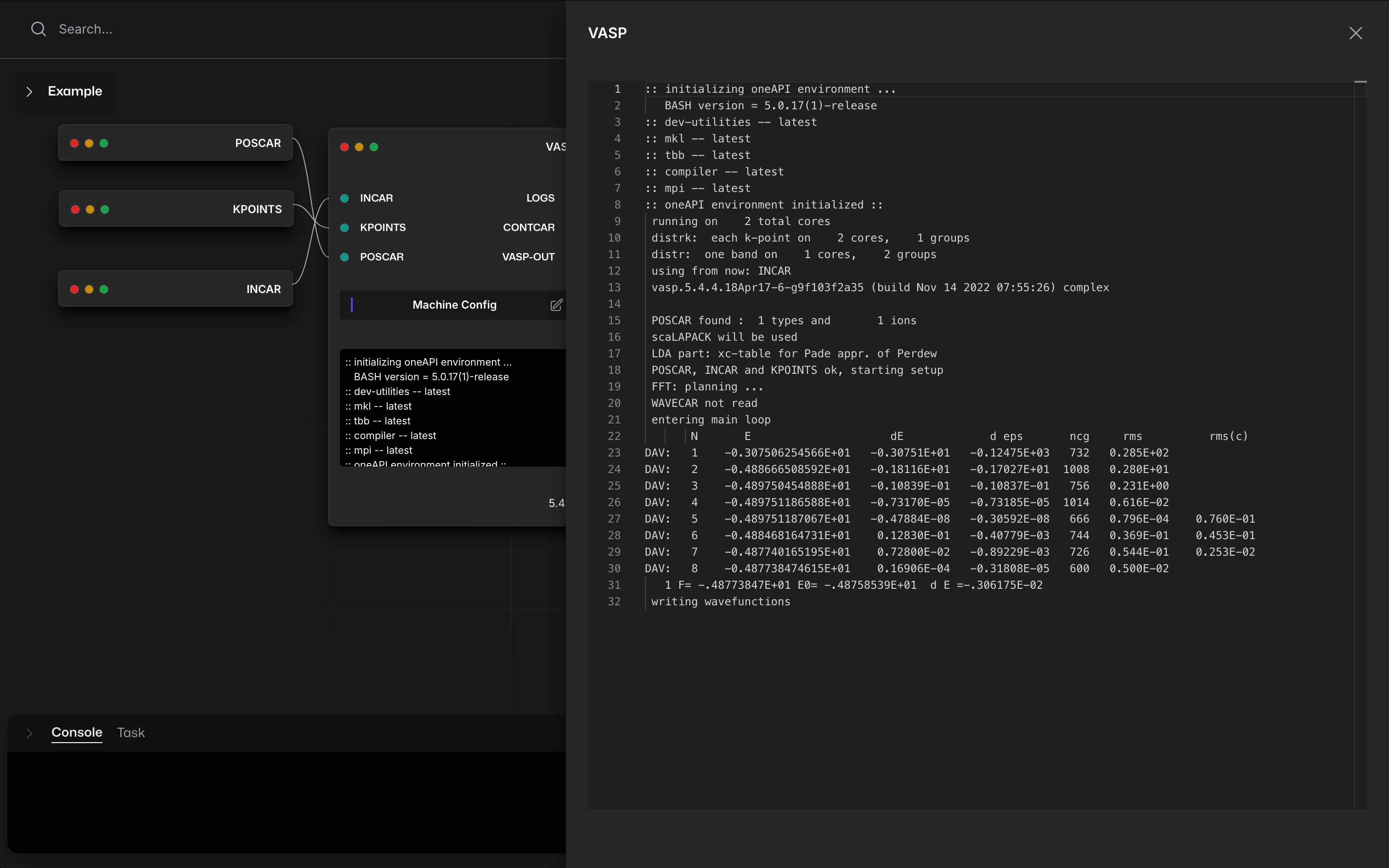 VASP 求解器开始运行后,你将会看到 VASP 运算的实时标准输出:
